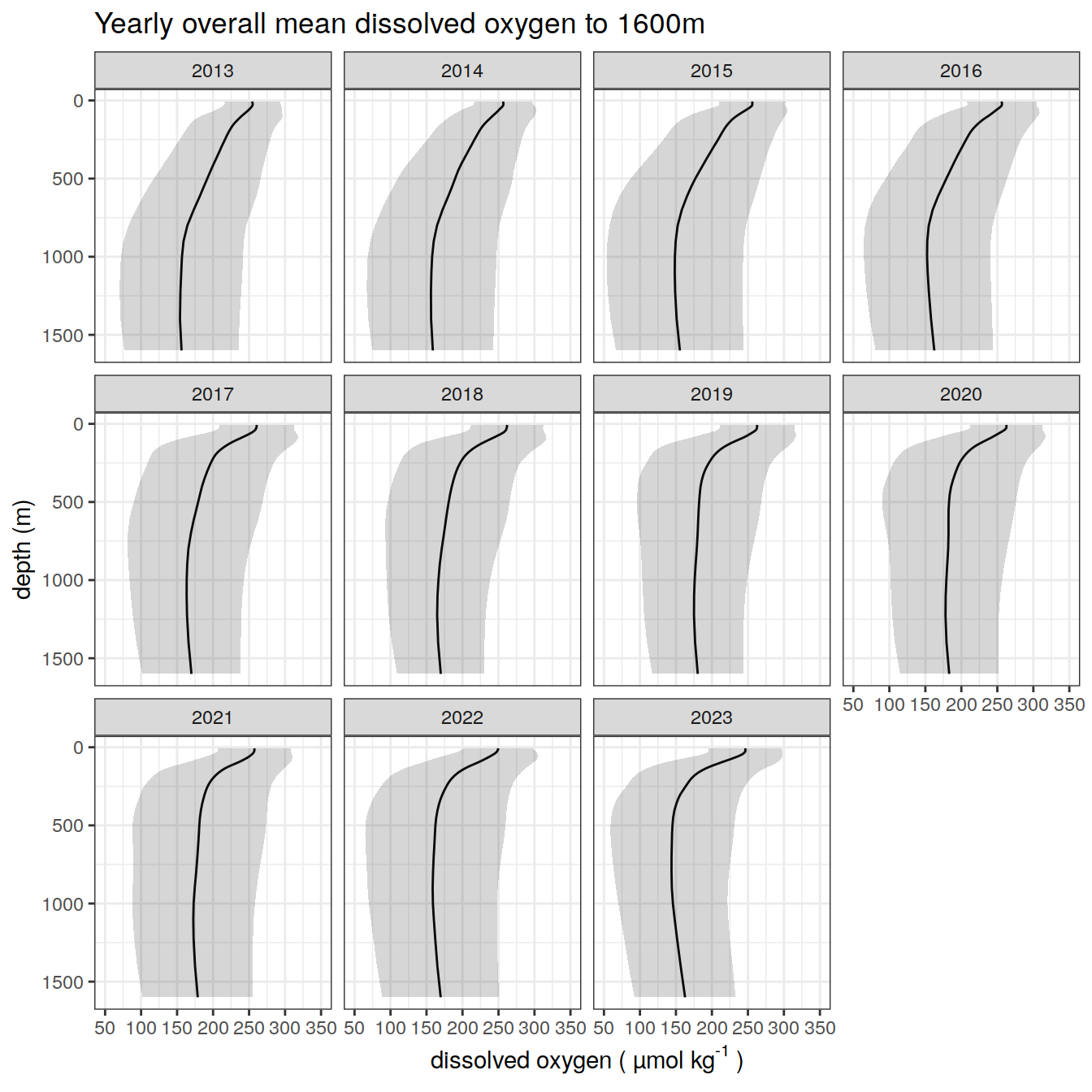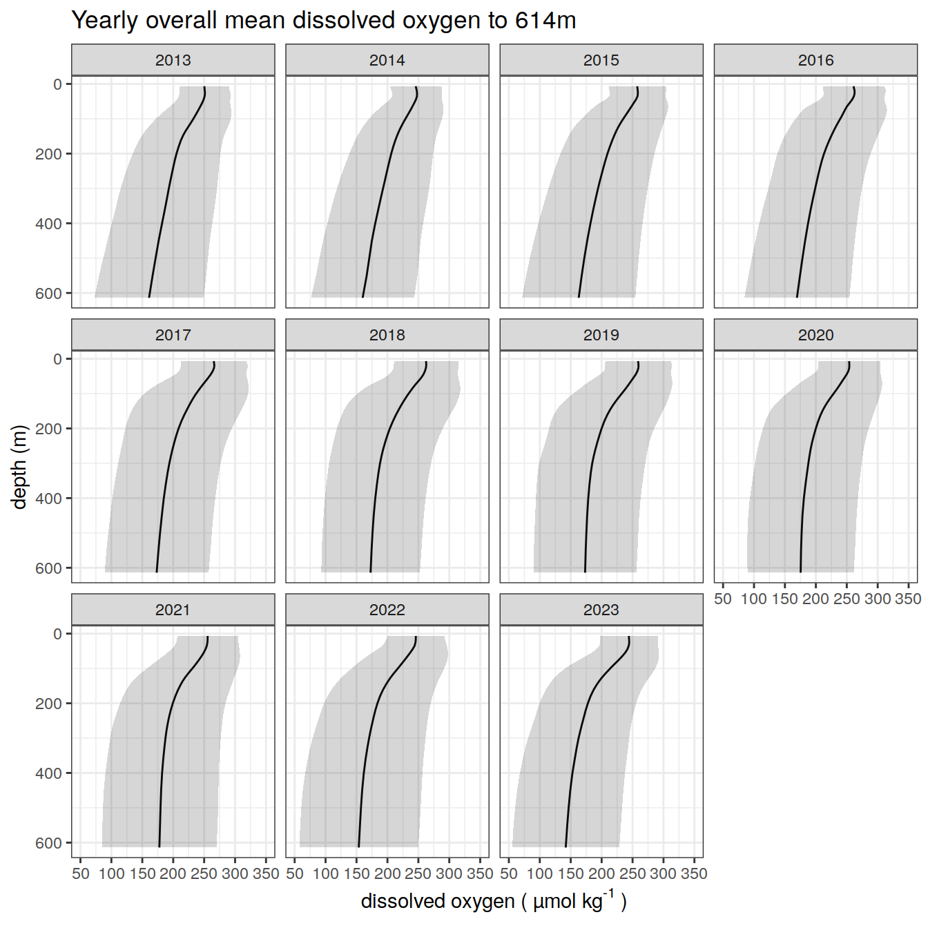 title = paste0('Yearly overall mean dissolved oxygen to ', max_depth_2, 'm'),